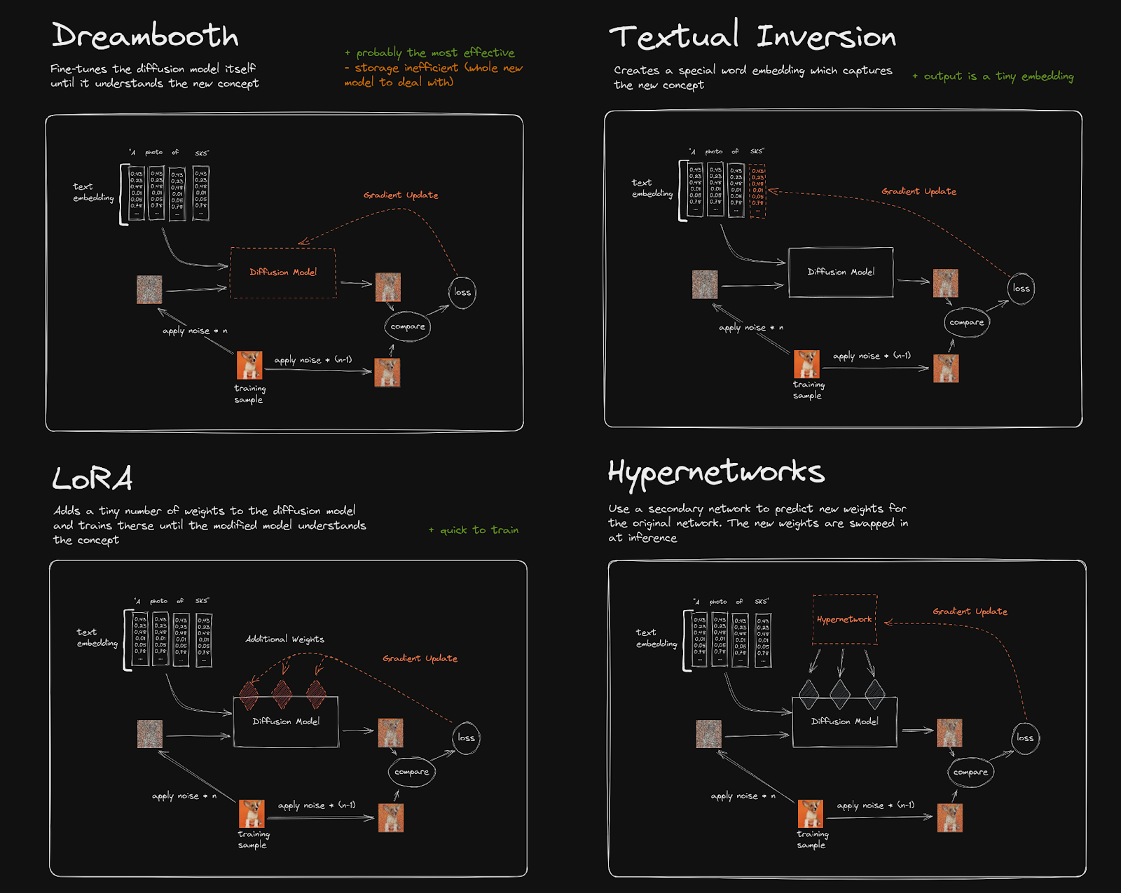 * ๊ฒฐ๋ก : ์๋ 4๊ฐ์ ์ด๋ฏธ์ง ํ๋ จ๋ฒ ์ค์์ dreambooth๋ ํ๋ฝ