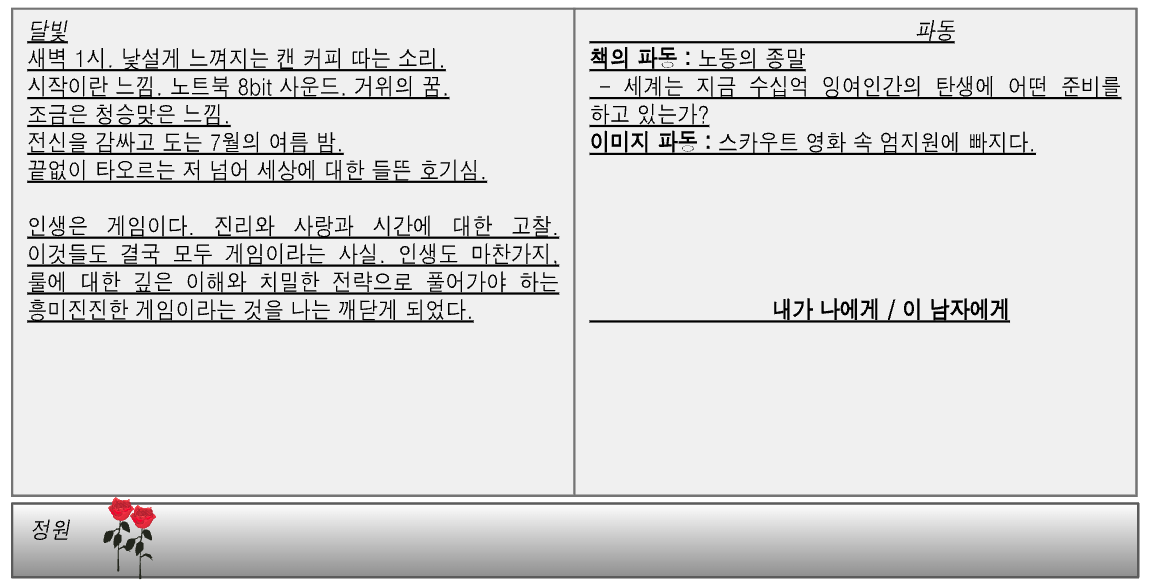๋์ ์ฐ์ฃผ(5,6์ธ ์ง๋ฅ ์์ค์ ์ํ AI ํ๋ก์ ํธ) ๊ฐ๋ฐ์ ์ผ๋จ, ๋ค๋ก ๋ฏธ๋ค๋ค. ๊ทธ๋ฆฌ๊ณ ์ค๋ซ๋์ - ๋ฌด๋ ค 16๋ ๋์ - ๊ธ๋ก๋ง ๋จ์์๋ Moonlit in your garden ๊ธฐํ์๋ฅผ ๊บผ๋๋ค.