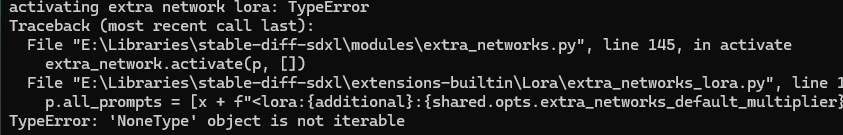 * activating extra network lora: TypeError ์ค๋ฅ