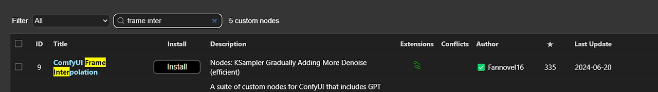- ๋ ComfyUI Frame Interpolation ๋ฅผ ๊ฒ์ํด์ ์ค์นํ๋ค