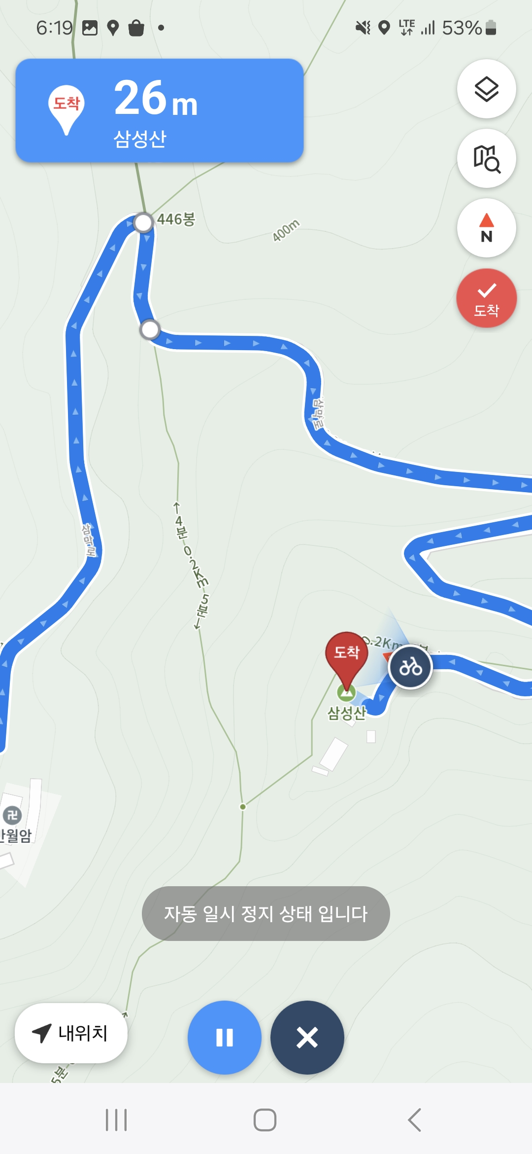 ํด๋ฐ๊ณ ๋ 481m, ์ ๊ธฐ์์ ๊ฑฐ ๋ฐฐํฐ๋ฆฌ๊ฐ ํ์นธ๋ฐ์ ๋จ์ง ์์๋๋ฐ ์ ์ด๋ฆฌ๋ ๊ฐํ๋ฅด๊ณ ํ๋ํ๊ฑด์ง ํ๋ฒ ์ง ๊ทผ์ก์ด ํฐ์ง๋๊ฑฐ ๊ฐ์๋ค. ๋๋ฌด ํ๋ค์ด ์ค๊ฐ์ ํฌ๊ธฐํ๊ณ ์ด๋๊น์ง ์๋ ์ค์ท์ ์ฐ์ผ๋ฉฐ ์ ๊น ์ฌ์๋๋ ํ์ด ์ฌ์ถฉ์ ๋์ด ๋ค์ ์ฌ๋ผ๊ฐ์ ์์๋ค. ํ์ง๋ง ์ค๊ฐ์ค๊ฐ ์ฌ๋ฌ๋ฒ ์ฌ๋ฉด์ ์ฌ๋ผ๊ฐ์ผ ํ๋ค. ํด๋ฐ 300m ์ฏค๋ถํฐ๋ ์ฌ๋ผ๊ฐ๋ ์ฌ๋๋ ๋ด๋ ค๊ฐ๋ ์ฌ๋๋ ์๋ฌด๋ ์์๋ค. ํ์๊ตฌ๋ฆ๊ณผ ์ง์ ๊ทธ๋ ๊ทธ๋ฆฌ๊ณ ๋ ๋ฟ์ด์๋ค.