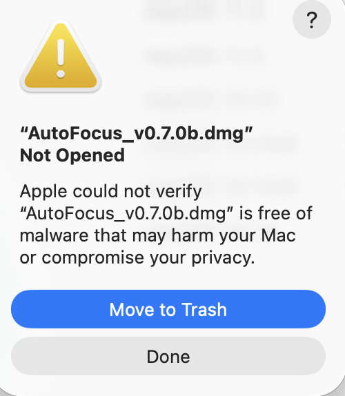 - ์ค์ > ๋ณด์(Privacy&Security) ํ๋ฉด์์ ์คํฌ๋กค์ ์ญ ๋ด๋ฆฌ๋ฉด ์๋ ์ด๋ฏธ์ง์ฒ๋ผ Security๊ฐ ๋์ค๊ณ ๊ทธ ์๋์ AutoFocus์๋ฆผ์ด ๋ ์๋ค. ์ฌ๊ธฐ์ Allow๋ฅผ ์ํค๋ฉด ์ค์น๊ฐ ๊ฐ๋ฅํ๋ค(์ฐธ๊ณ : ์๋ ์ค์ท์ Wacom๋์ ์ AutoFocus๊ฐ ๋ฌ๋ค)