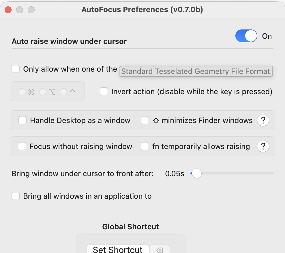 A focus-follows-mouse implementation on steroids! It was calculated that the average user clicks about 6000 times per day. Multiplied by 365 days over 10 years, this equals a hefty 21,900,000 clicks! AutoFocus helps you move significantly faster through yo